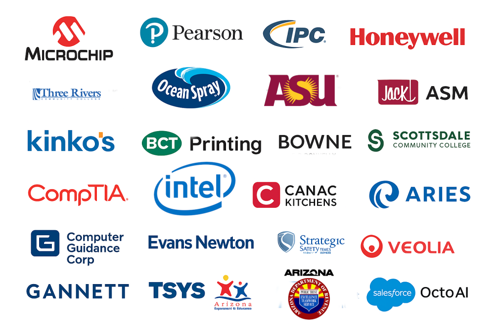 Some are my former clients, some my former employers - many remote, many in Arizona. Current client is Honeywell Fire with Arrow. 6 rounds at intel. 8 Bit, ATTD clean room, AI group, Industrial IOT group, SoC compliance - QA, Confidential Cloud Computing - GCP and Azure.